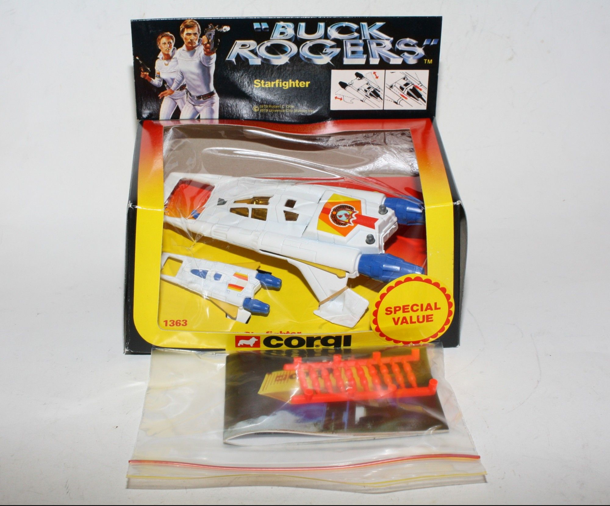 Comes in its hard to find card box which is all complete with all flaps attached. Some age related wear to edges and corners with some creasing, tears and small areas of damage.Good colours, please study the photos for exact condition.