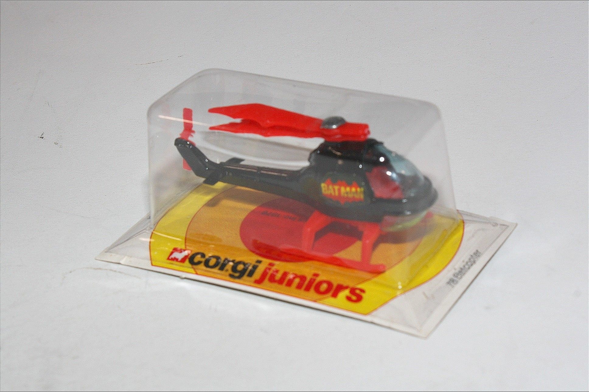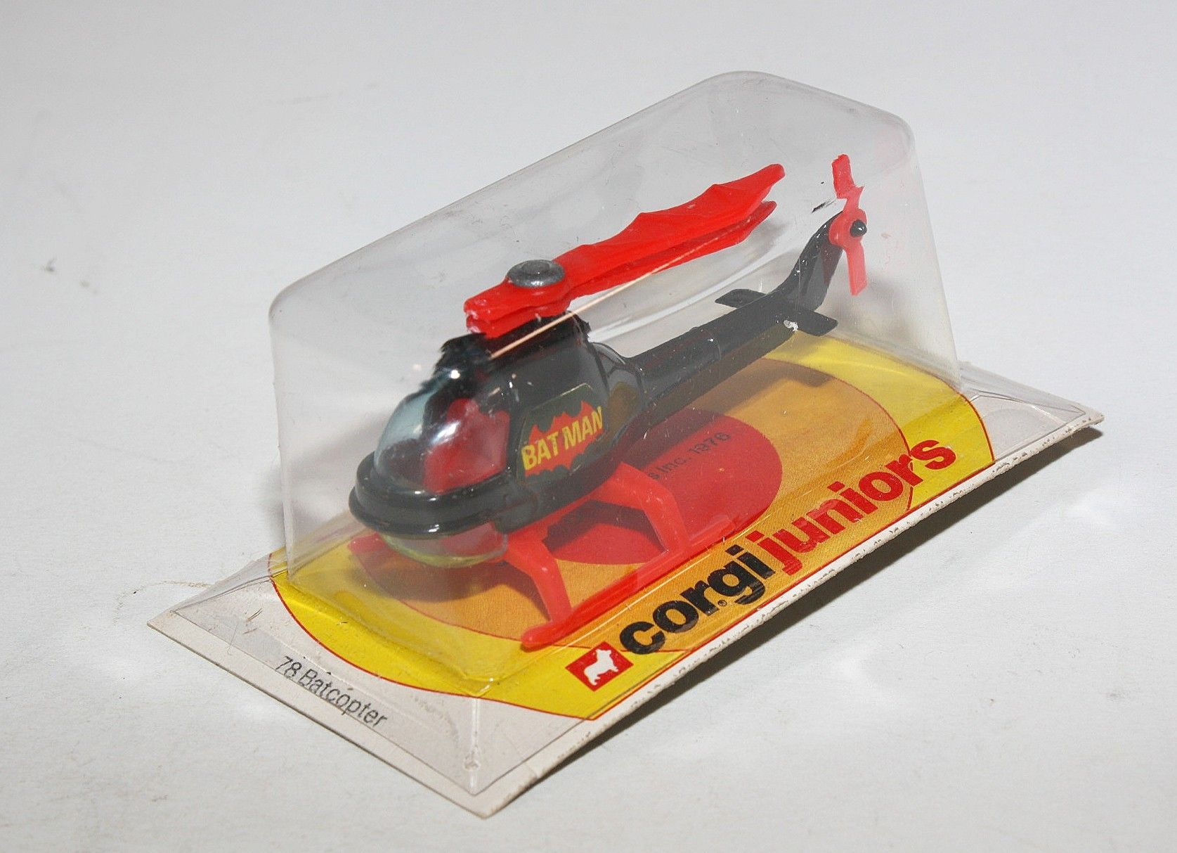 A pristine example of this hard to find Corgi Juniors Batcopter model in mint condition in a mint sealed countertop display blister straight from a trade pack. Please study the photos for exact condition.