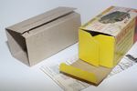 Complete with its original carded box which is all complete with all flaps attached, one endflap partially detached, quite firm but with some light creasing and marks, small 3cm split to one edge, original inner packing present and good. Please study the photos.