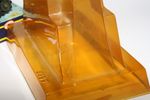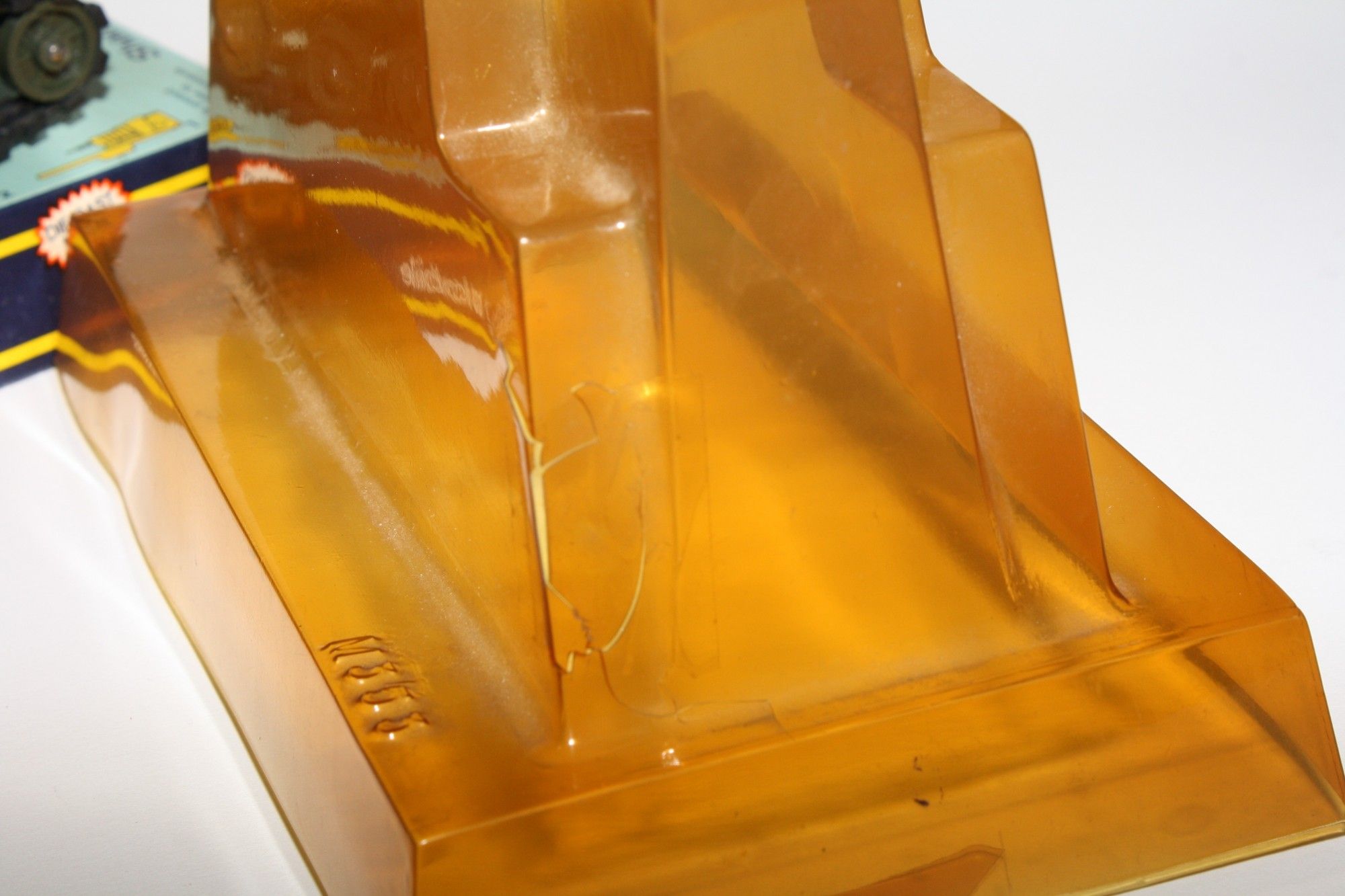 Complete with its original bubble box, plastic upper has yellowed but is quite firm with just a couple of small cracks/splits. Tabs at each end are present and card base is all intact. Please study the photos.