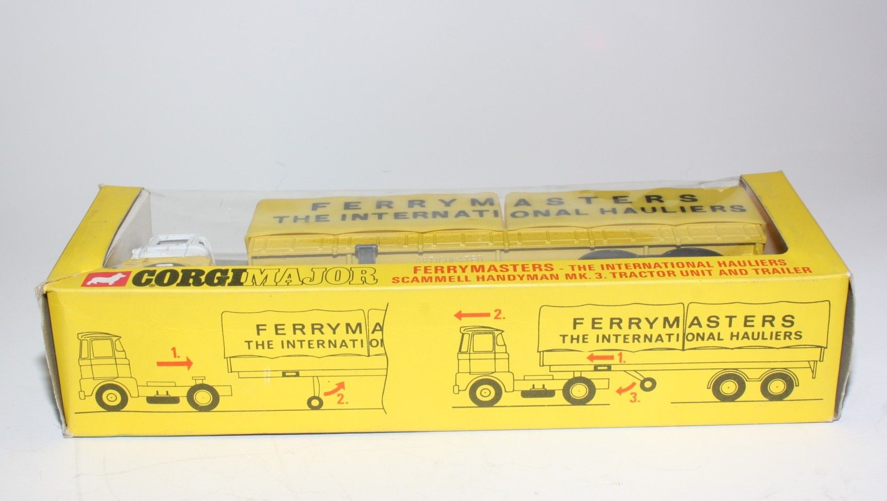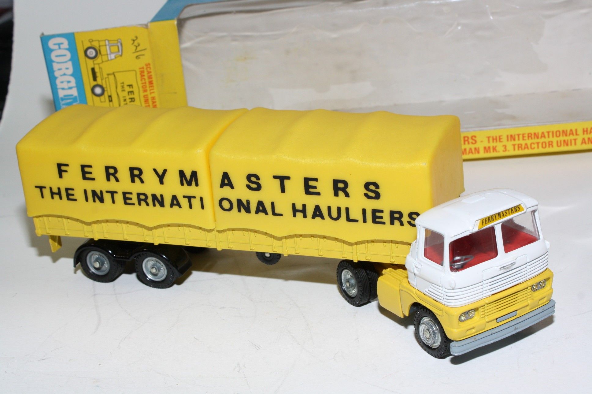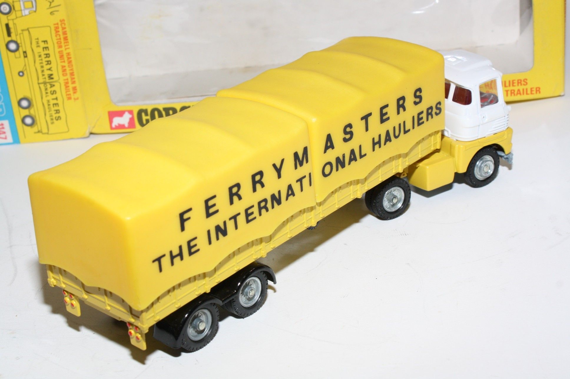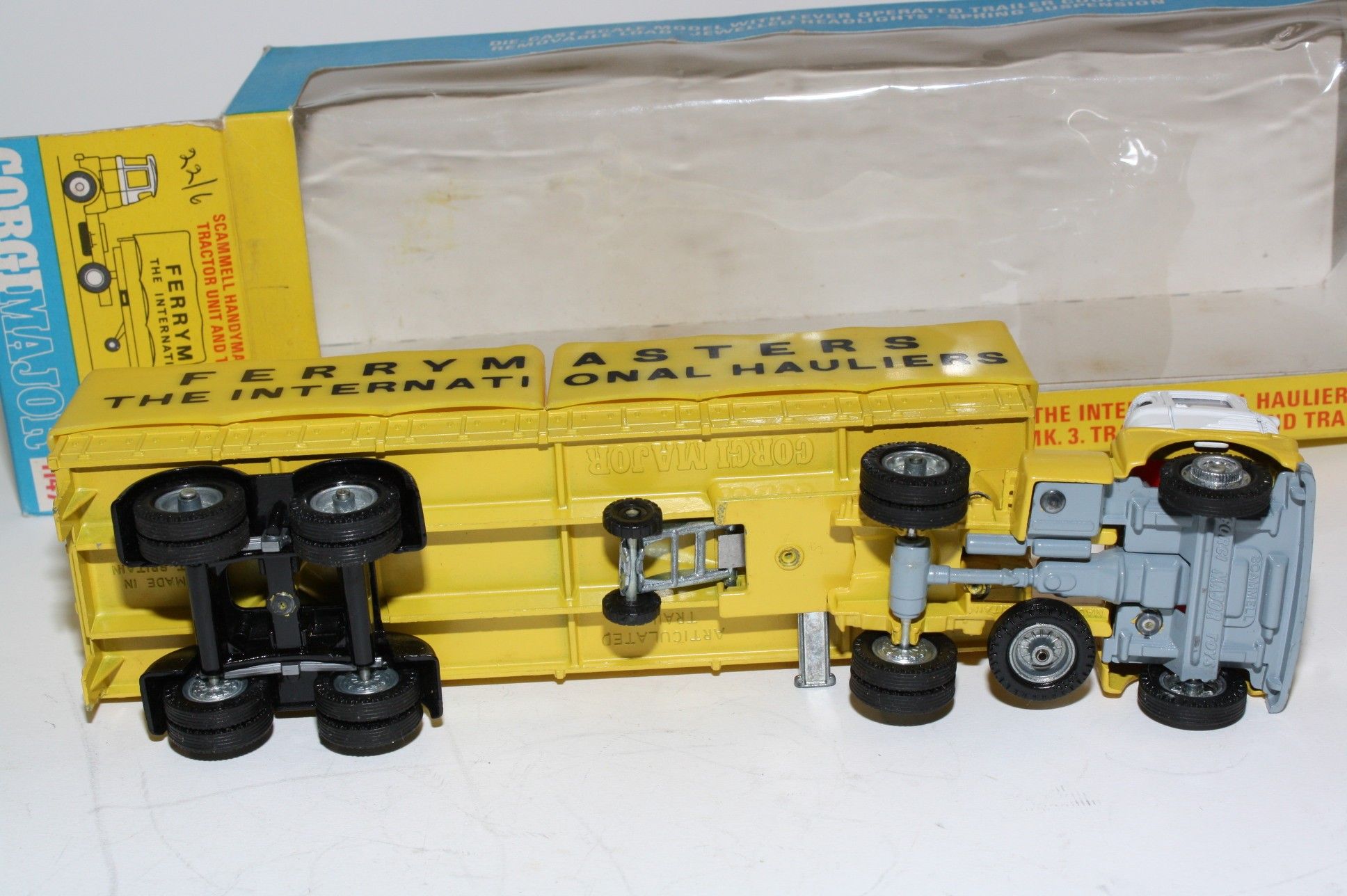A superb example of this Corgi Commercial. Gleaming original white and yellow paintwork is mint, (small factory paint fault ro rear of cab) please study the photos for exact condition . All original tyres on bright cast hubs, interior and crystal clear windows. Perfect coupling, jewelled headlights, excellent plastic tilts. Underside is mint.