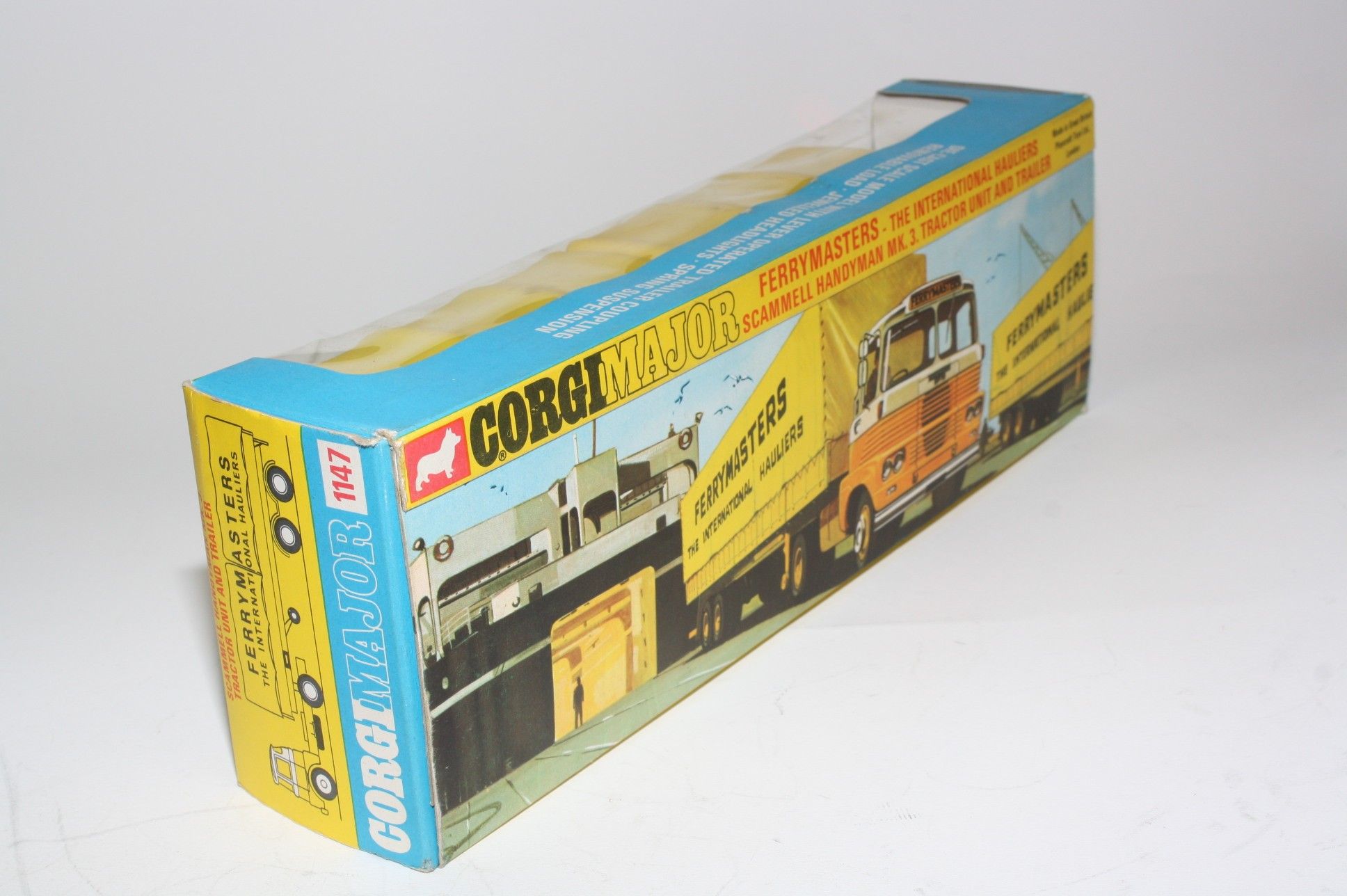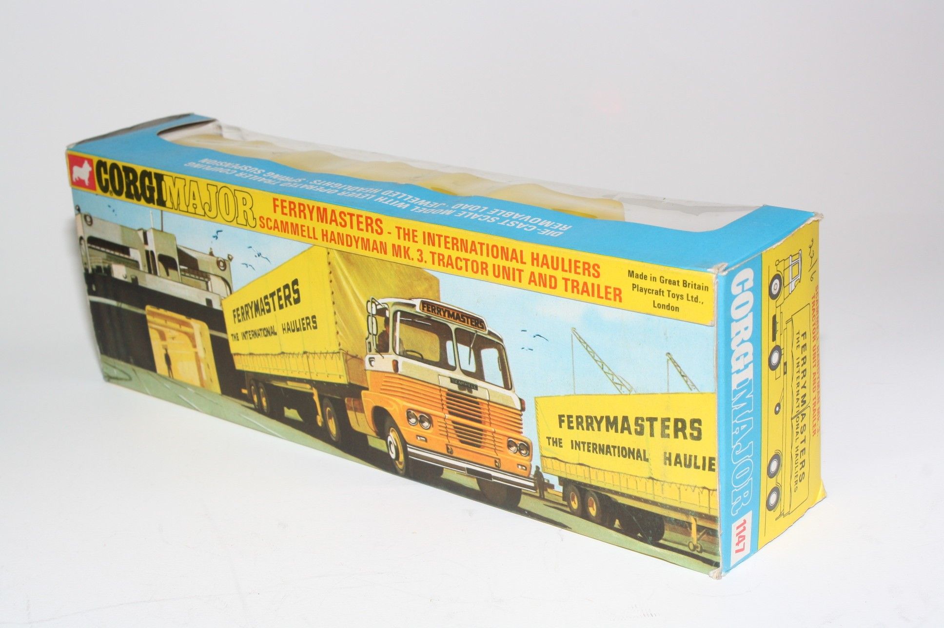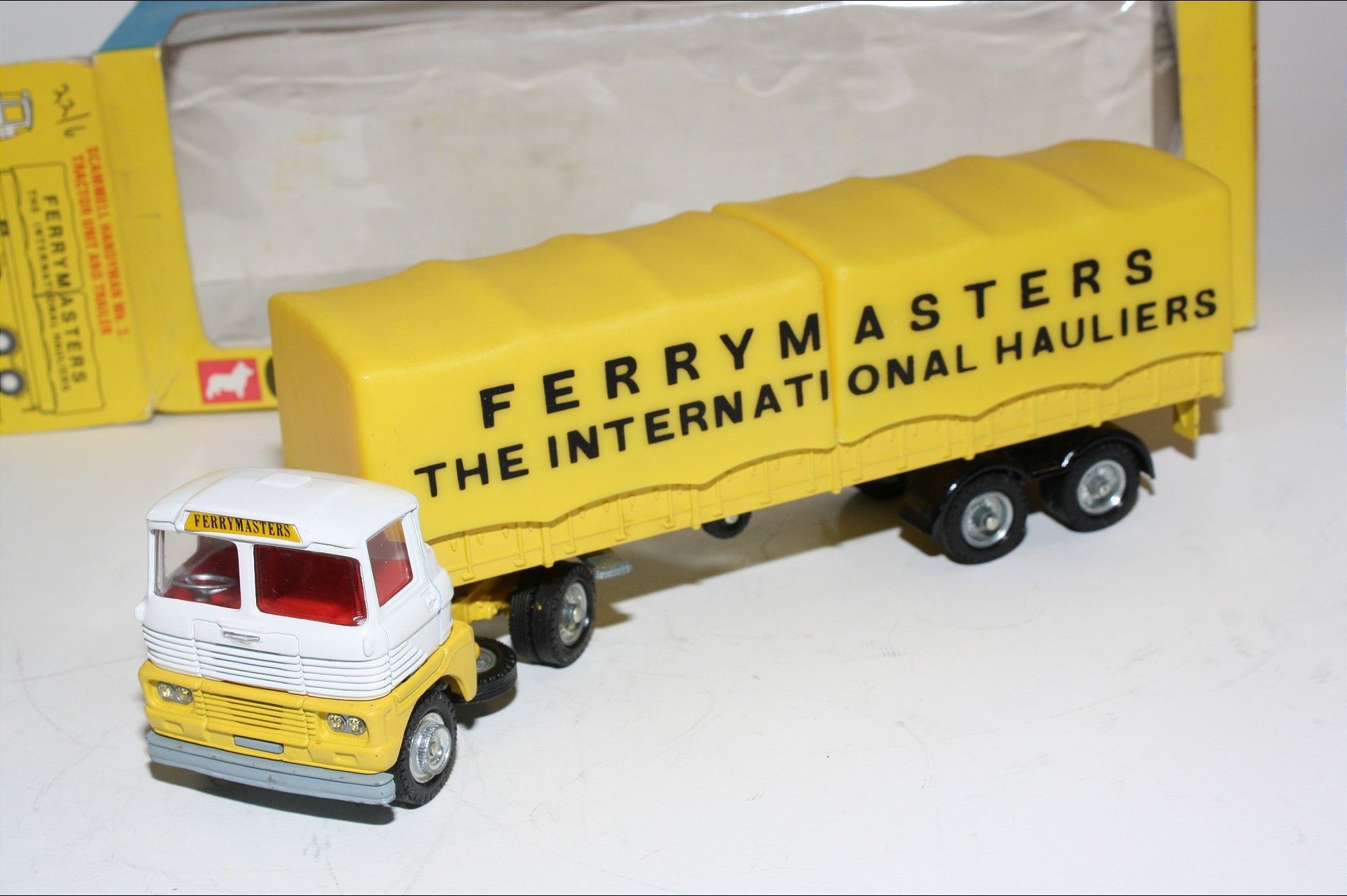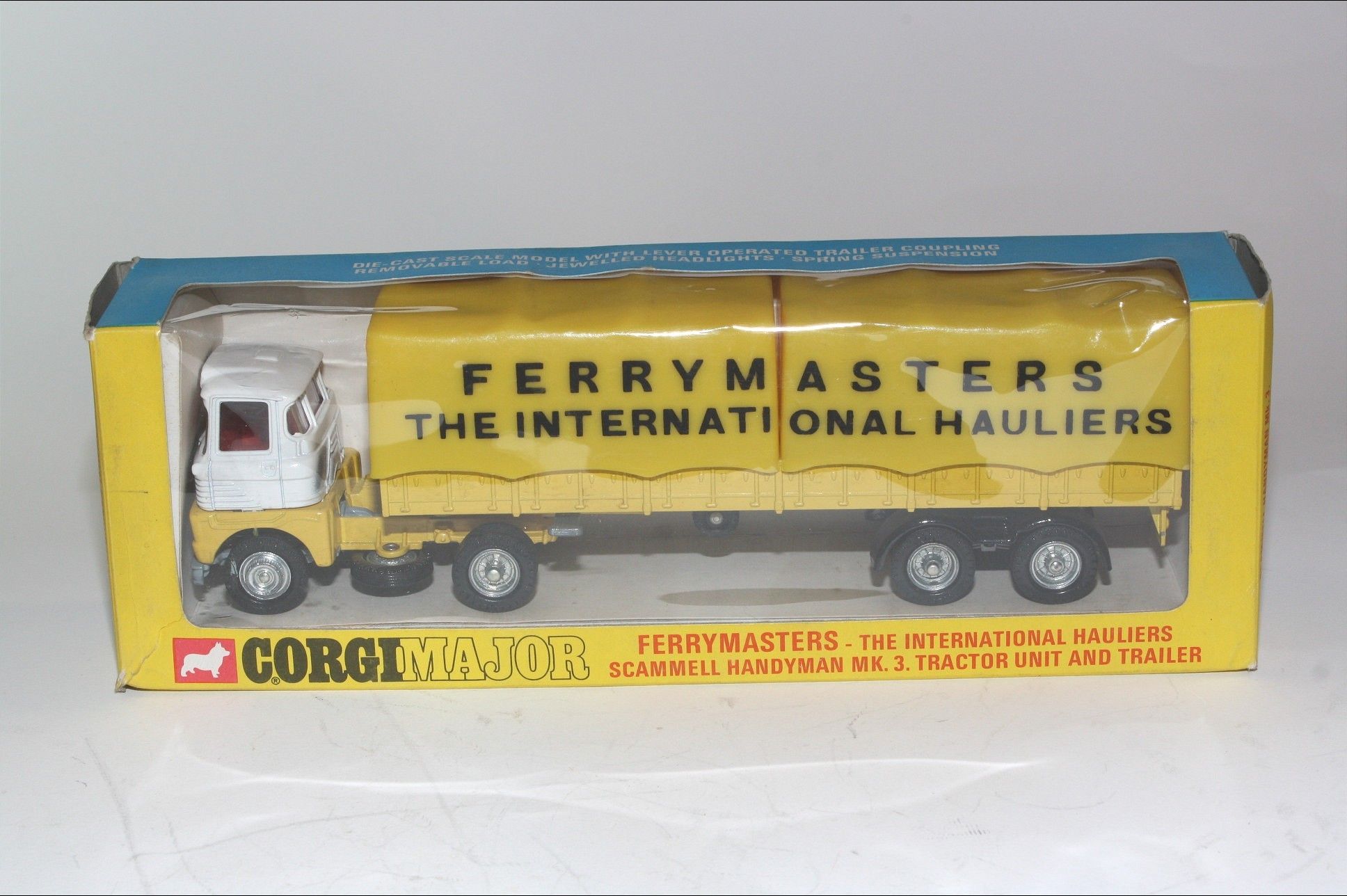 A superb example of this Corgi Commercial. Gleaming original white and yellow paintwork is mint, (small factory paint fault ro rear of cab) please study the photos for exact condition . All original tyres on bright cast hubs, interior and crystal clear windows. Perfect coupling, jewelled headlights, excellent plastic tilts. Underside is mint.