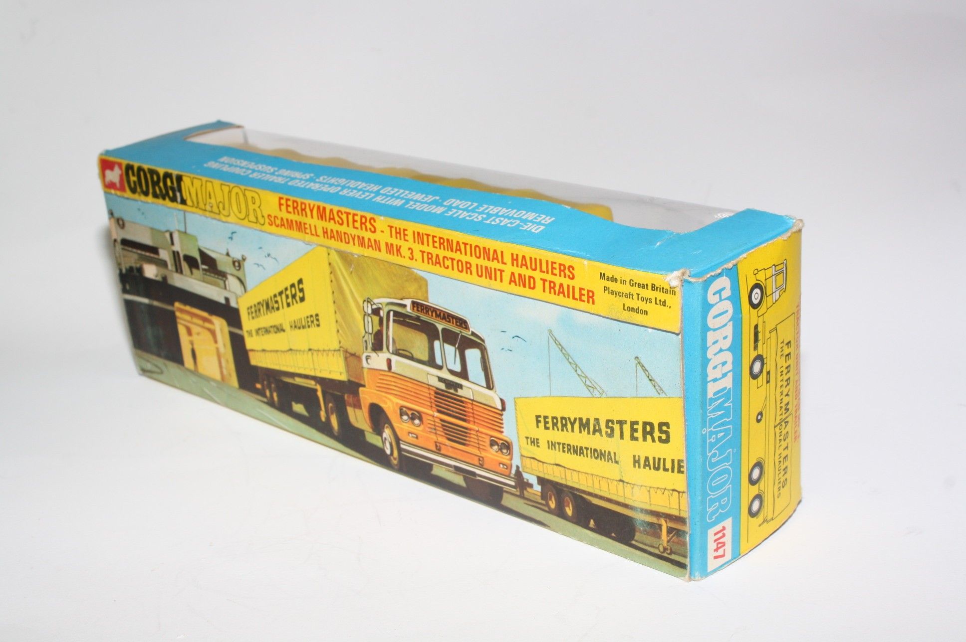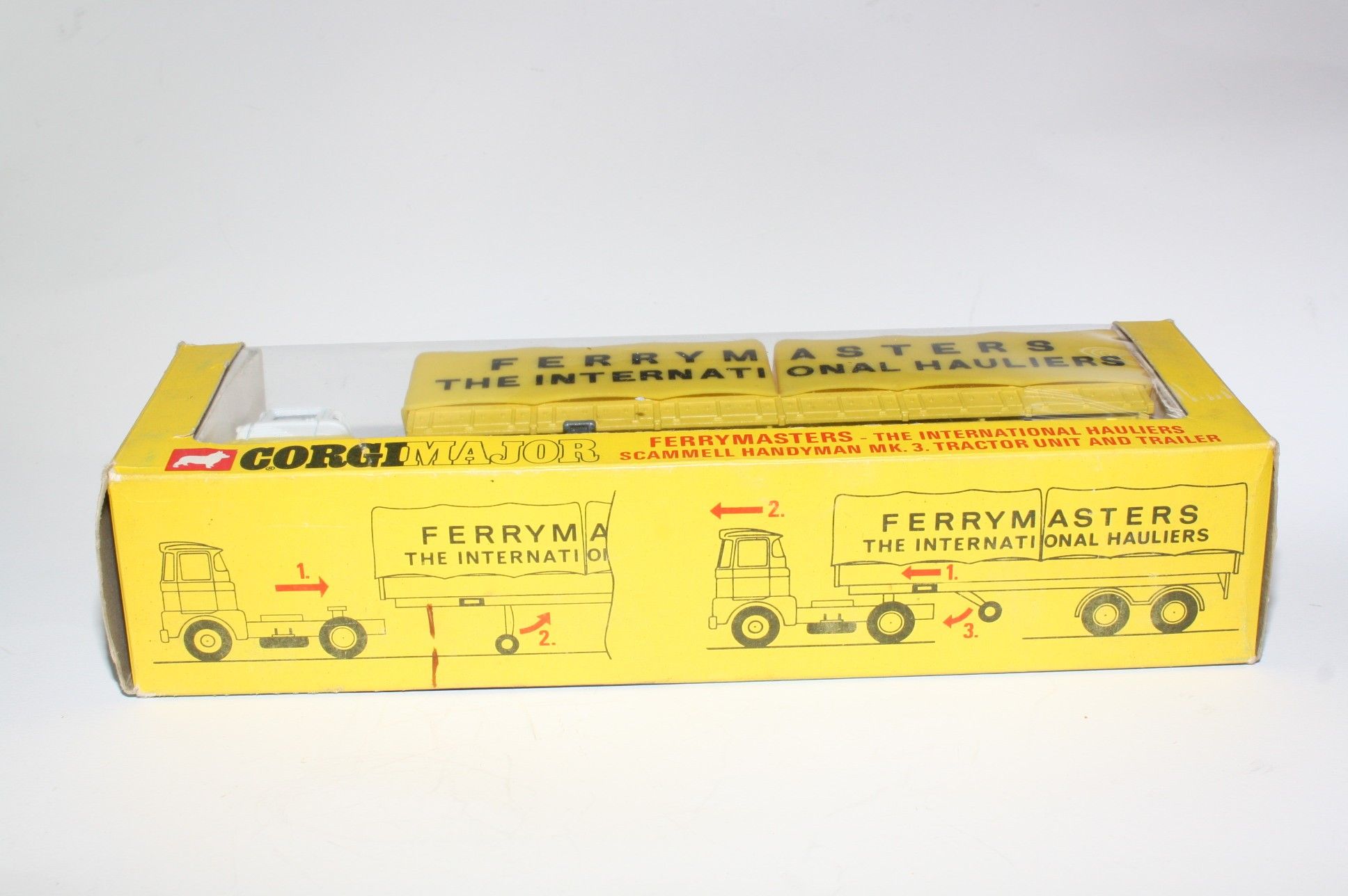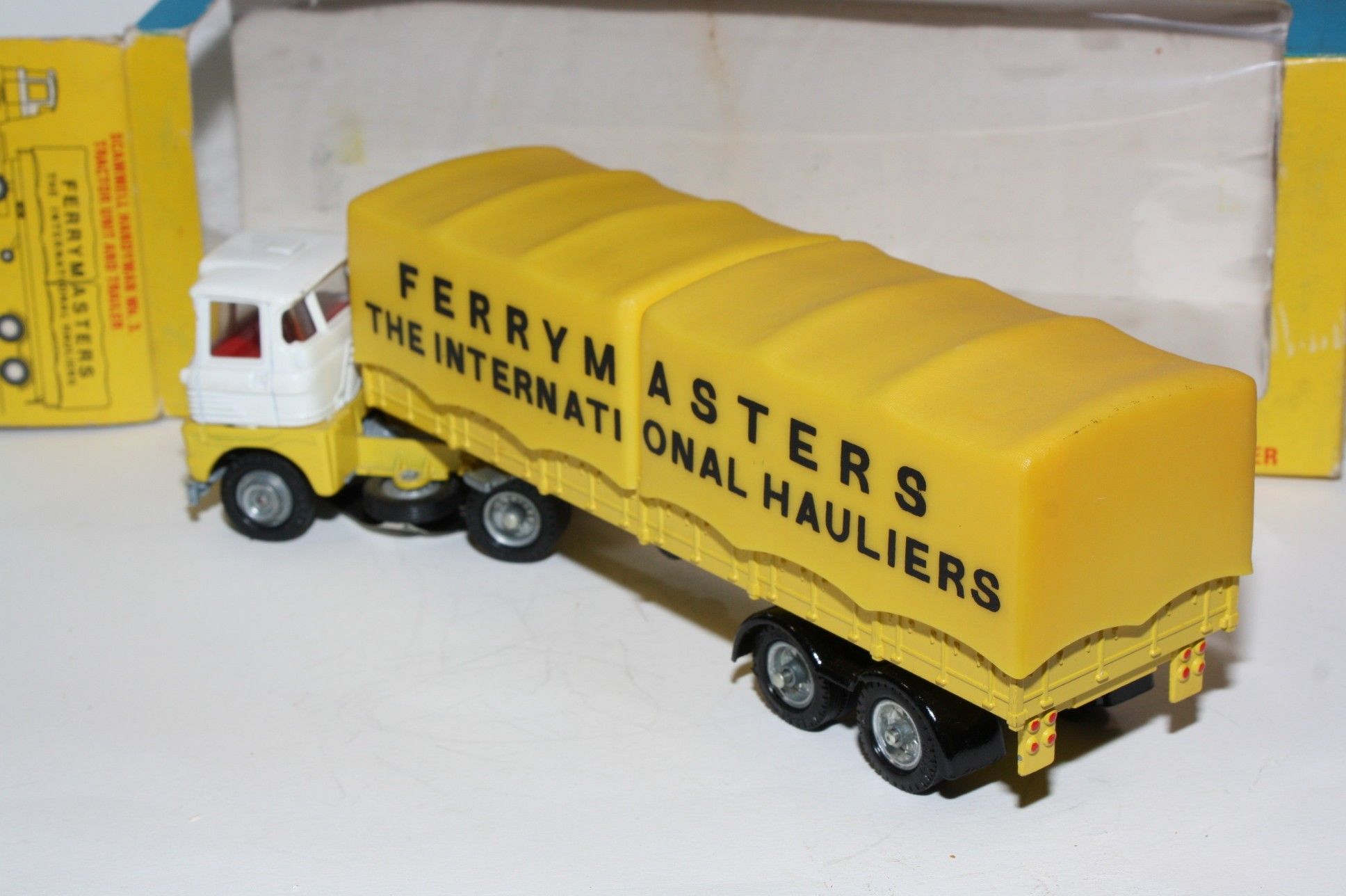 A superb example of this Corgi Commercial. Gleaming original white and yellow paintwork is excellent with just a few tiny chips, please study the photos for exact condition . All original tyres on bright cast hubs, interior and crystal clear windows. Coupling, jewelled headlights, excellent plastic tilts, rear plastic leaf springs missing a couple of halves as is usual but still sits fine. Underside is excellent.