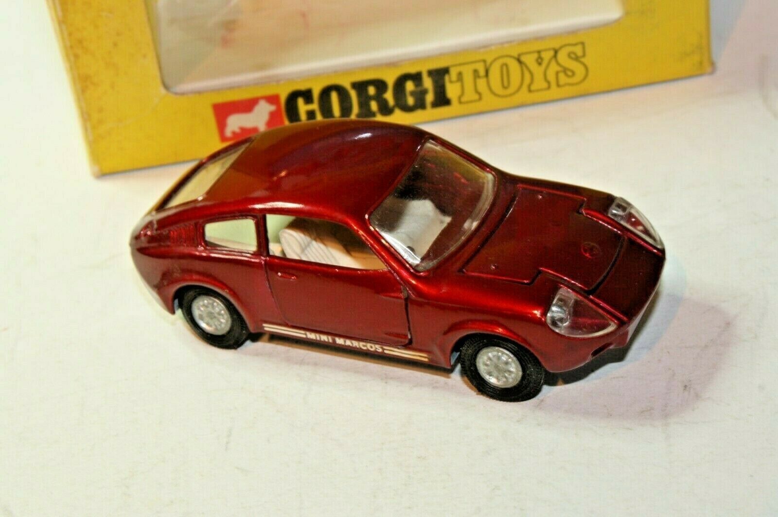 A superb example of this beautiful Corgi model. Gleaming metallic red paintwork is excellent with just a few very small chips, please study the photos for exact condition. Original tyres on Golden Jack removable cast hubs, all as new, perfect windows and cream interior, all decals, light covers all present, underside mint.