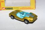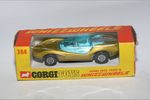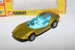 A superb example of this Corgi model. Gleaming metallic gold paintwork is mint, please study the photos for exact condition. Perfect Whizzwheels, crystal clear blue tint windows with sliding roof panel, white interior, underside is mint. perfect underside.
