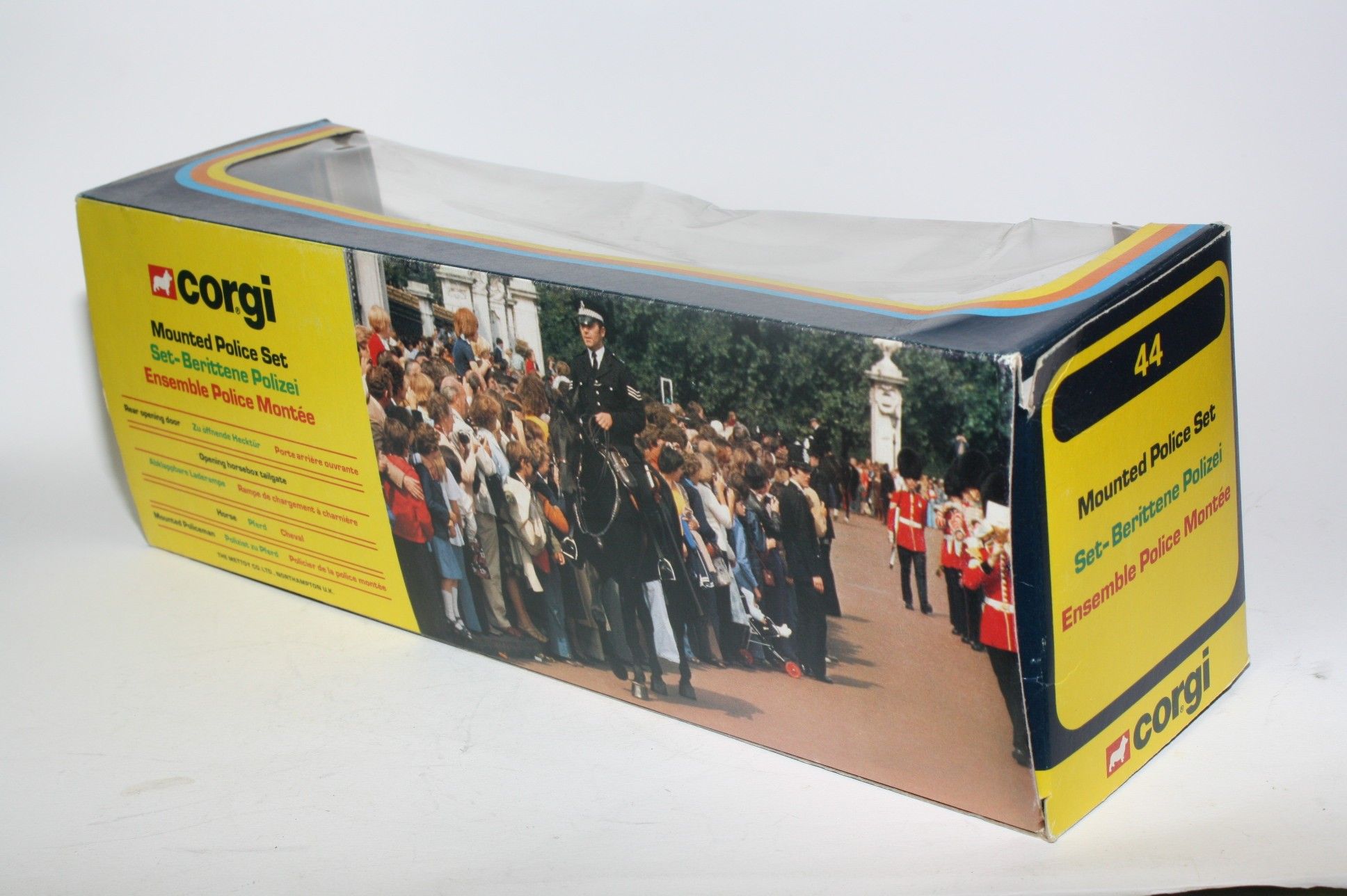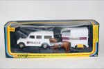 A superb example of this late 1970's Corgi Gift Set, hard to find. Original white paintwork is mint, appears not to have been removed from box. Please study the photos for exact condition. Perfect wheels, tan interior, crystal clear windows, stickers appear mint along with perfect fiure on horse.