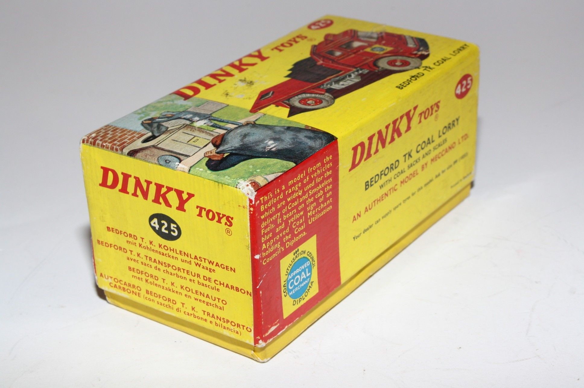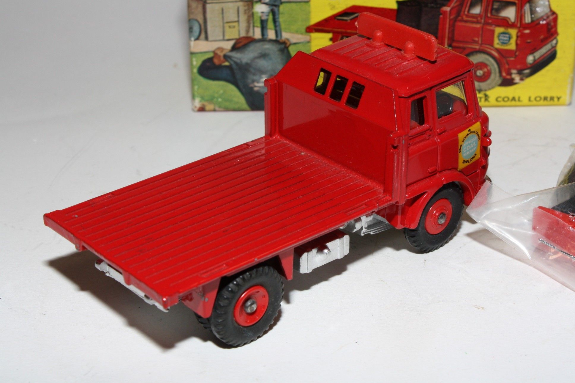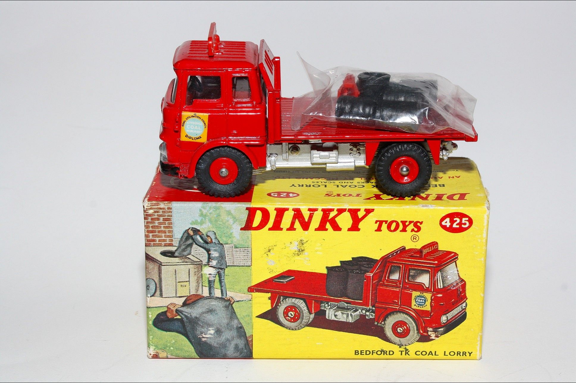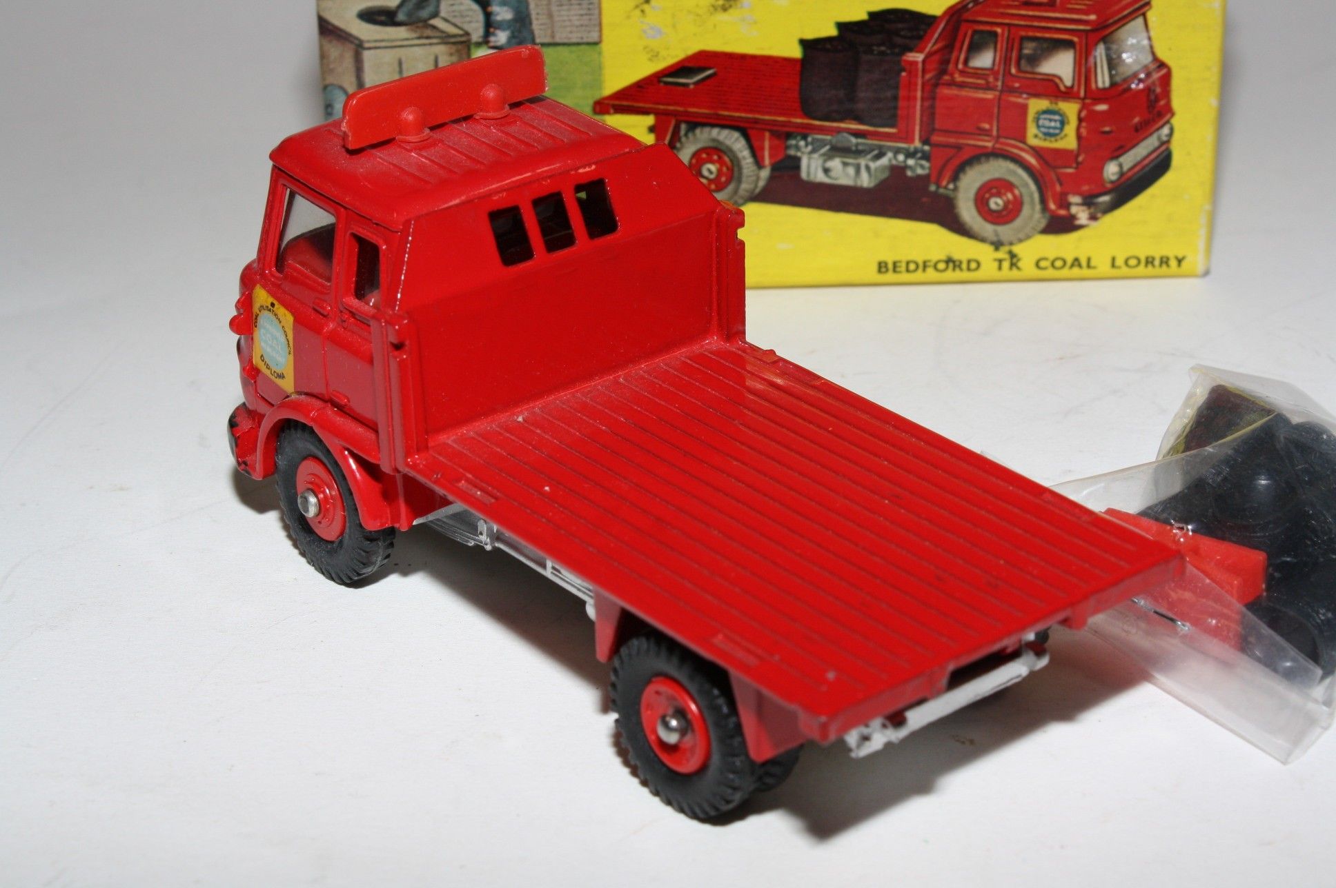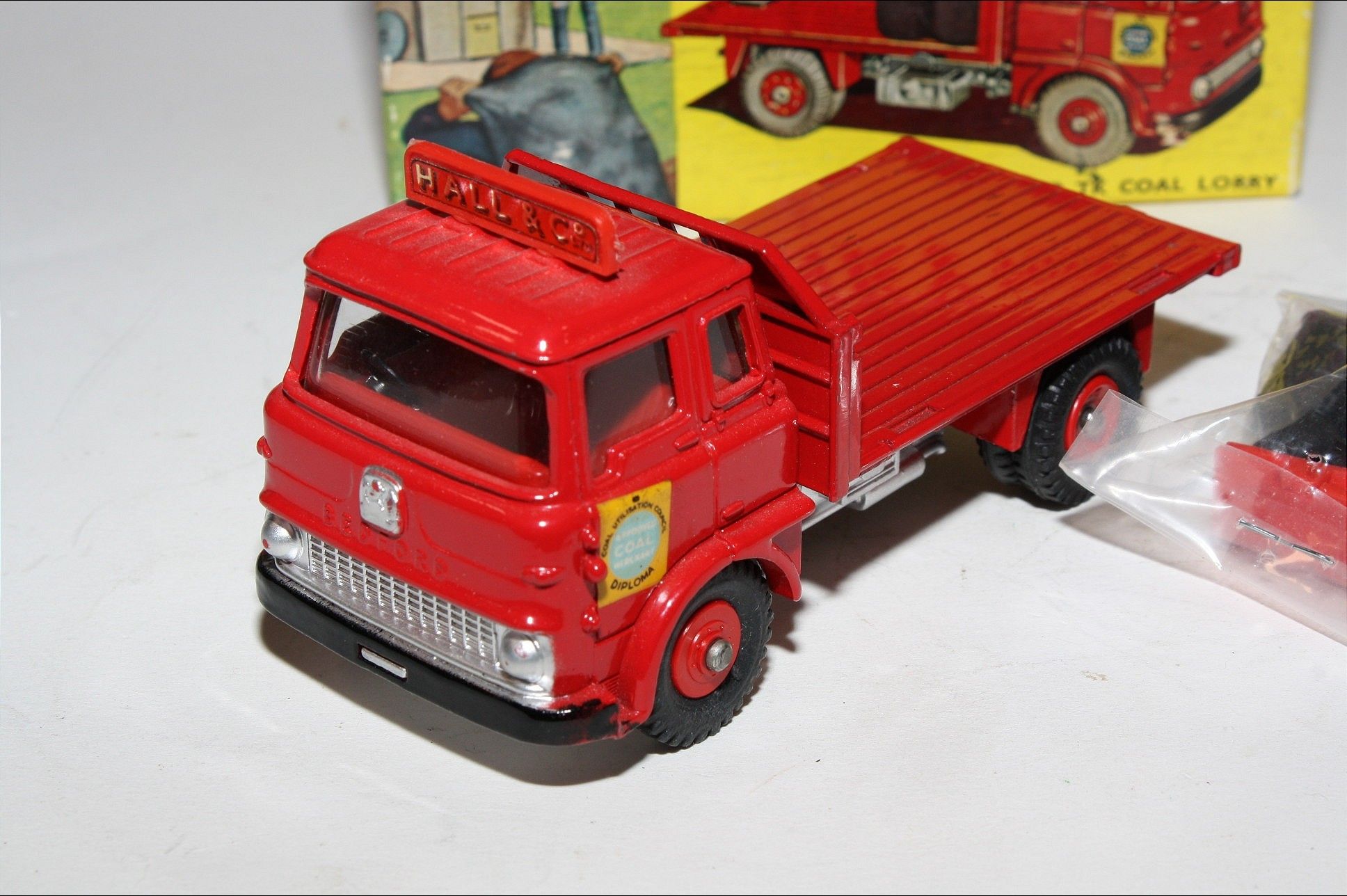 A stunning example of this 1960's Dinky Bedford TK. Gleaming original red paintwork is mint, please study the photos for exact condition. Original rubber tyres on red plastic hubs on straight free rolling axles are all excellent, perfect windows and harder to find blue interior, perfect roof sign with Hall's livery and door decals, comes complete with 7 original coal sacks and red scales, mint underside.