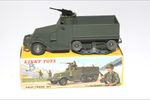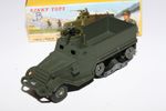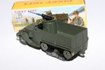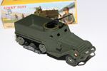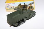 A superb example of this vintage French Dinky military model. Original green paintwork is mint, please study the photos for exact condition. Good tyres and tracks on green hubs with straight axles, good decals. Plastic turret machine gun and perfect tow hook. Mint underside.