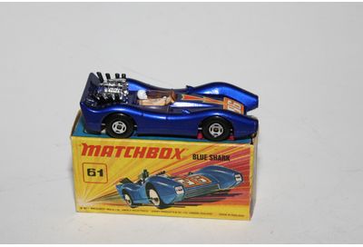 Matchbox 61c Blue Shark, Amber Glass, Mint in original Box