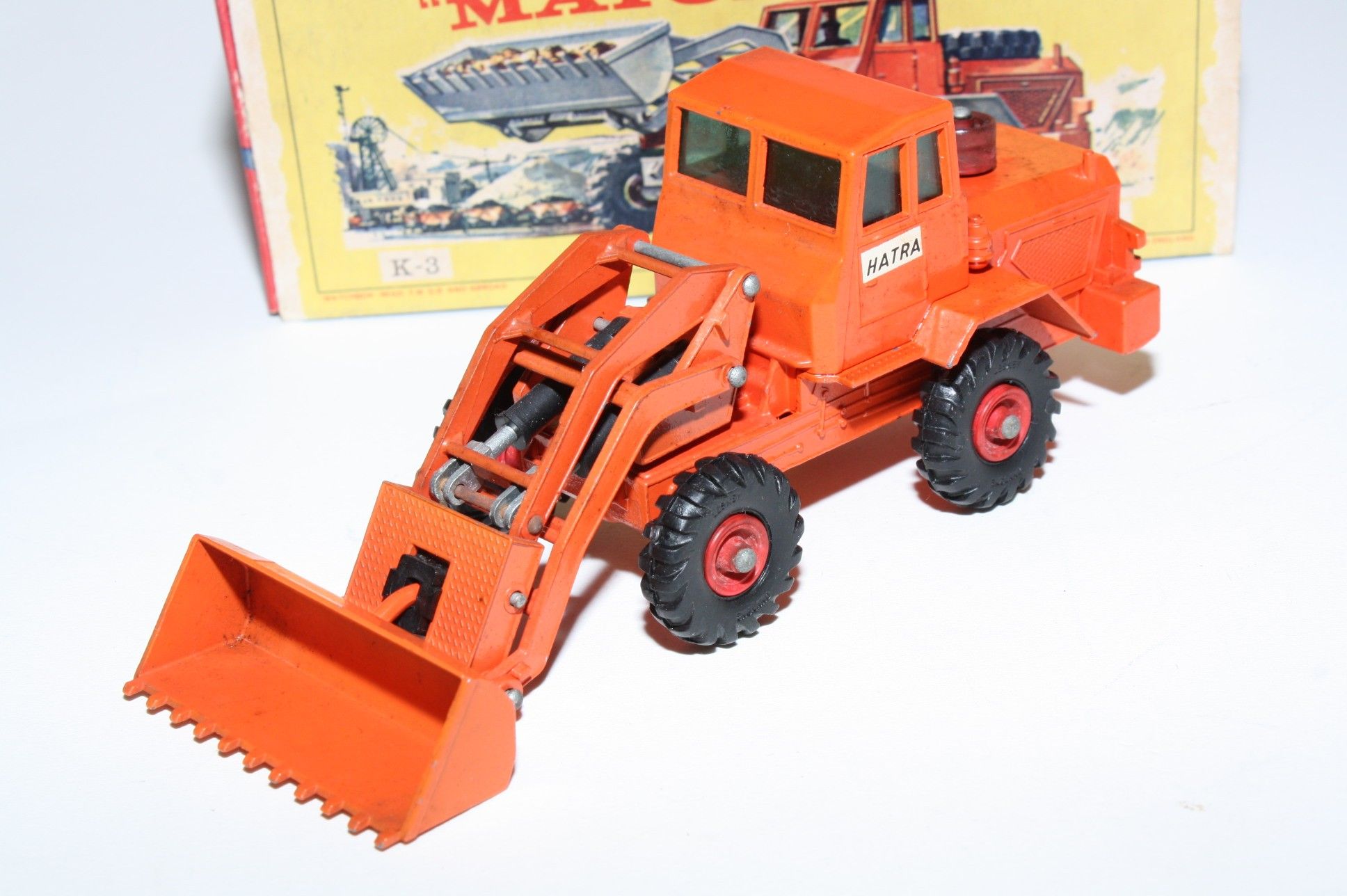 An example of this 1960's King Size model. Original paintwork is good with a few nicks and would benefit from careful cleaning, please study the photos for exact condition. All tyres present (usual loose fitting), straight free rolling axles, shovel hydraulics nice and strong, Hatra stickers stickers good. Underside all ok.