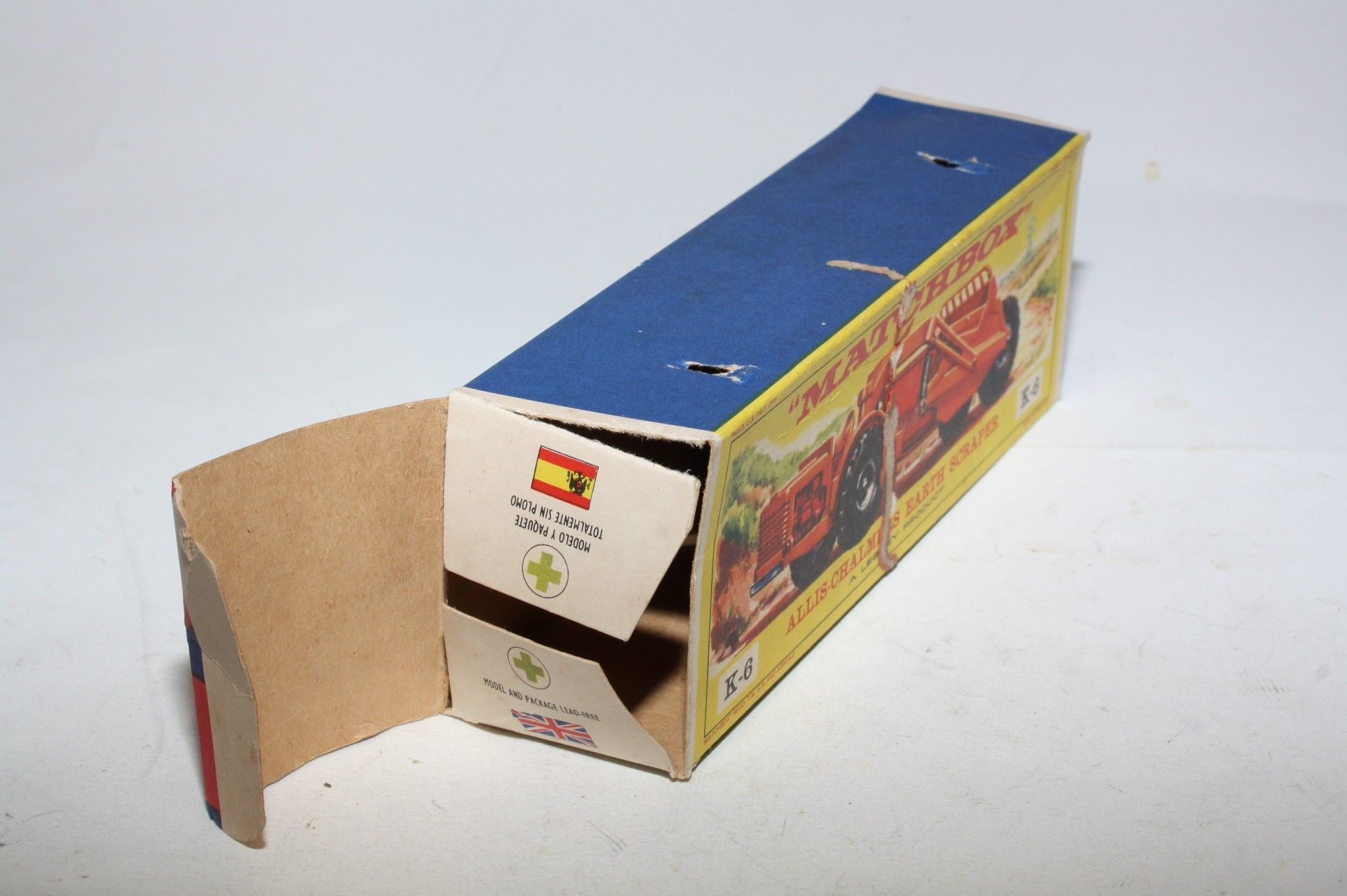 Comes in its early original picture box which is good with all flaps attached although a couple are partially detached. Some old elastic band residue in places and a couple of perforations on non picture side. Nice bright colours, please study the photos.